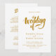 This elegant white-and-gold wedding invitation is perfect for a modern wedding. The simple design features elegant gold calligraphy on a clean white background. The invitation card includes the wedding details on the back instead of paying for a separate enclosure card.