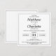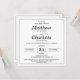 Elegant script wedding physical or digital printable square invitation in white with black lettering and a delicate frame. Personalise it with the Mr. and Mrs. names, surnames, date, location, registry, and RSVP information. The back can be customised with the couple's initials.