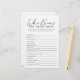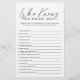 Spice up your modern black and white bridal shower with the Elegant Script Who Knows The Bride Best Game! This sophisticated bridal shower game features a minimalist script font for a clean, timeless look. Laugh and bond over your favourite bride memories as you try to prove you know her best. With thoughtful questions that spark conversation, this game makes for a heartfelt celebration. Perfect for a classy, intimate bridal shower with close friends, the Elegant Script Game adds a touch of distinction. It's a memorable way to honour the bride while bringing your guests together. Make your bridal shower one to remember with this unique game!