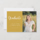 This graduation invitation features an elegant yellow gold-and-white theme with a photo. The photo is for placement purposes only and can be replaced with any photo of your choice. Customise text on the front and back of the card to create a truly personalised graduation party invitation. #graduationparty #classof #highschoolgraduation