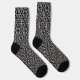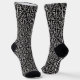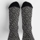 These crew socks are an elegant pattern of black and white damask with fancy white scrolls on a black background.