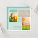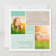 This elegant chic and classic graduation party invite / graduation announcement design features artistic vintage white scrolls frame and a pastel light mint green colour blocks with 2 photo collage on the front of the card.
