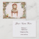 Lovely business cards with soft pinks with a touch of gold, aqua, green and lavender. Very soft French script writing and scrolls frame the pink roses Victorian chair with cup and saucer and little colourful bird. Victorian style is pretty and feminine. If you need help with personalising contact greer at greerdesign@aol.com