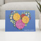 Elegantly stylish sculpted heart-shaped floral bouquet greeting card. Personalizable "LOVE YOU ALWAYS" sentiment. Calming blue background with brightly coloured spring flowers arranged in a heart shape. Simple minimalist design and typography. Great for any day you want to express your affections for another.