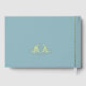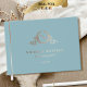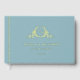 Personalise this elegant monogrammed wedding guestbook featuring real gold, silver, or rose gold foil on exquisite monogram and front, spine, and back text. Sea glass blue cover background colour in luxurious velvety-soft texture, and beautiful modern calligraphy details in a clean, minimal, and sleek style. Three size options with three inside paper-type choices. Personalise the guestbook with your monogram initials and wedding date on the front, your choice of text for the spine, and a smaller monogram with your initials on the back and one text section for your date, any other message you like, or if you prefer the design without this section, leave the corresponding template text box in blank to delete. Part of our Silver Sea Glass monogram wedding collection with many coordinating products available.