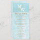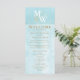 Elegant Sea Glass Teal Monogram Wedding Program. Beautiful coastal design great for beach themed weddings. Design feature sea glass art effect background in sea glass frosted teal, with monogram initials atop top in white with decorative gold ampersand, wedding program text shown in gold coloured text over pale frosted sea glass colour. Back has wedding party text in gold over pale frosted sea glass. Personalise with your bride & groom monogram intials, bride and groom names, wedding date, wedding location, short thank you message, the ceremony text, the wedding party. We invite you to visit our Zazzle store, Beachy Design Co, to view matching products and more. Please contact us if you require any assistance.