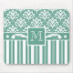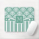 Elegant Sea Green Damask with Your Monogram Mouse Pad