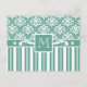Add your own monogram to this elegant art deco retro 1930s design in crisp light green and white damask and stripes.