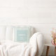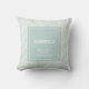 An elegant nursery throw pillow welcoming a newborn baby boy or girl featuring a background in seafoam blue-green with a vintage-like touch of white lace (digital print only) on the sides. Personalise their first name and birth stats including the date, time, weight and length displayed in a vintage-inspired white typeface. The reverse is solid seafoam for another decor option. Click the Personalise button and use the template fields provided to edit the text.
