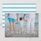 Send out holiday cheer with this nautical themed flat Christmas card featuring a simple design with the words "Seas and Greetings" in an elegant thin white script, along with your message over your favourite horizontal beach vacation photo. The backside has aqua and white stripes.
