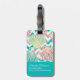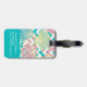 This elegant luggage tag features faux glitter, colourful seashells in multiple colours of teal, coral pink, aqua, and gold. The shells are placed on aqua blue chevron stripes that also contain images of the shell pattern, and those are contrasted with white chevron stripes. The back of the tag has the same seashell pattern, but with a matching solid teal block at the end that contains your custom text in white. You may use the text lines to put your preferred info in place of the example. Pretty!