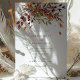 This beautifully crafted wedding invitation features a rich tapestry of autumnal hues, with an array of leaves in shades of russet, burgundy, burnt sienna, and olive green. The delicate watercolor style lends a soft and naturalistic feel to the design, evoking the serene beauty of fall. Accents of ochre and auburn berries add a touch of organic texture, creating a warm and inviting aesthetic. Despite its autumn-inspired motif, this versatile invitation is perfect for celebrating nuptial vows in any season. The sophisticated palette and elegant design provide a timeless appeal that can complement a variety of wedding themes.