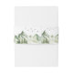 Watercolor landscape painting of trees, flying birds and montains in the background. Calm and serene nature illustration with pine trees and silhuettes of flying birds.