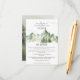 Watercolor landscape painting of trees, flying birds and montains in the background. Calm and serene nature illustration with pine trees and silhuettes of flying birds. Make sure your guest get all the information of your specila day with this details enclosure card.