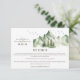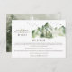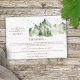 Watercolor landscape painting of trees, flying birds and mountains in the background. Calm and serene nature illustration with pine trees and silhuettes of flying birds. Make sure your guest get all the information of your special day with this details enclosure card.