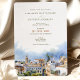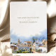 Celebrate your special day with this exquisite Sevilla, Spain destination wedding invitation. Featuring a stunning watercolor illustration of Sevilla's picturesque skyline, this invitation captures the charm and romance of the city's historic architecture. The soft blend of azure blues, warm terracotta, and lush greenery evokes the vibrant atmosphere of this enchanting location. The elegant typography in gold and classic fonts adds a touch of sophistication, making it perfect for couples who desire a blend of tradition and modernity. Customise this invitation with your wedding details to create a lasting impression on your guests.