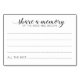 These elegant Share A Memory cards will be the perfect addition to your wedding reception or wedding shower. This design features a combination of handwriting and block fonts in black. There is space available for guests to leave their memories and their name(s). Part of the Alejandra collection.