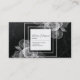 Present your brand with an air of sophisticated drama and modern elegance using this stunning business card design. A luxurious black marble background, detailed with subtle white veining, creates a moody and dramatic foundation for your professional identity. Softly layered over this rich texture are large, ethereal flowers, rendered with a beautiful transparency that evokes the delicate layers of sheer organza or tulle. This soft, romantic floral element provides a breathtaking contrast to the clean geometry of the crisp, white double-square frame at the centre, which creates a perfect minimalist focal point for your name and contact information. This design is an exquisite choice for professionals in creative fields such as wedding photography, event planning, floral design, or for high-end beauty salons, fashion boutiques, and makeup artists.