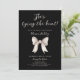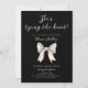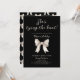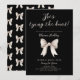 Elegant Black Bow She's Tying the Knot Bridal Shower Invitation. Sweet feminine charm beautiful watercolor painted white sand taupe bow set against black background. Calligraphy script wording let's everyone know that she's tying the knot. Invite friends and family to an enchanted girly coquette bridal shower with bows galore! Pretty bow pattern on the back of the invitation. Templates are easy to edit with all the bridal shower details.