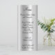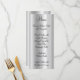 A faux pale silver satin ombre foil wedding menu with elegant modern calligraphy.