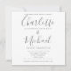 Featuring elegant signature style names, this stylish simple grey and white all-in-one wedding invitation can be personalised with all your special wedding day information on the reverse including your RSVP, accommodation, and additional details. Designed by Thisisnotme©