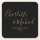 Elegant Signature Script Black And Gold Wedding Square Paper Coaster