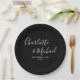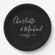 Elegant Signature Script Black And White Wedding Paper Plate