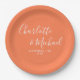 Elegant signature coral wedding paper plates personalised with signature style names and your special wedding date. Designed by Thisisnotme©
