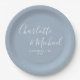 Elegant Signature Script Dusty Blue Wedding Paper Plate