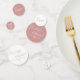 Elegant signature dusty rose wedding table confetti personalised with signature style names, special wedding date and message. Designed by Thisisnotme©