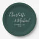 Elegant Signature Script Emerald Green Wedding Paper Plate