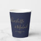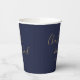 Elegant Signature Script Navy Blue Gold Wedding Paper Cups
