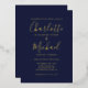 Featuring signature style names, this elegant real gold foil navy blue wedding invitation can be personalised with your information in chic lettering. Designed by Thisisnotme©