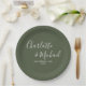 Elegant Signature Script Olive Green Wedding Paper Plate