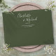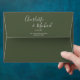 Featuring signature script names, this elegant return address envelope can be personalised with your names and address details in modern white lettering on an olive green background. You can customise the background to your favourite wedding theme colour. Designed by Thisisnotme©