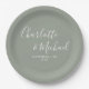 Elegant Signature Script Sage Green Wedding Paper Plate