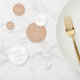 Elegant signature tan taupe wedding table confetti personalised with signature style names, special wedding date and message. Designed by Thisisnotme©