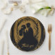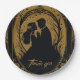 Elegant silhouette of a bride and groom surrounded by ornate swirls and embellishments. The design is done in a luxurious combination of gold and black, which exudes elegance and sophistication. The intricate details give the invitation a romantic and classy touch,