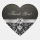 Elegant Silver and Black Damask with Diamond Heart Thank You wedding stickers.