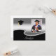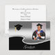 An elegant graduation party invitation with a silver-like appearance. The silver and black sections on the front are separated by a unique, curved border. The smaller size of this card means you can use it as an enclosure with announcement cards. Include it only for people you wish to invite to the party. The photo and all text are easily changed by using the template. Selecting “Personalize this design” offers you several edit options to easily change the text (wording, plus type font, color, size, position) and to edit the design elements. You may also want to scroll down to the section “Transfer design to a product” for a few suggestions about other items this design can be used on.