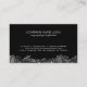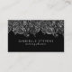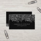Elegant vintage floral paisley lace in silver grey over black background. Fully customisable double sided wedding planner business card template.