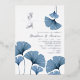 Modern and sophisticated design featuring blue ginkgo leaf in watercolor with real silver foil calligraphy. Easy to customise with your own details.