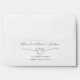 This elegant and minimalist white and dusty blue wedding envelope in a 5x7 format features a return address, simple calligraphy script, and a chic romantic silver rope heart. Perfect for adding a refined, timeless touch to your wedding stationery.