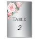 Elegant Silver and Pink Roses Wedding Table Number
