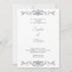 Introducing an exquisite SILVER and white floral art deco wedding invitation, perfect for a sophisticated and romantic celebration. The beautiful invitation features elegant scroll work on the top and bottom of the stationery in a stunning silver colour, giving it a refined and timeless feel. The traditional black font is perfectly complemented by the modern and stylish silver script font used for the couples' names, adding a touch of luxury to the design.