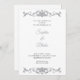 The beautiful floral design on the invitation adds a touch of natural beauty to the overall design, bringing an element of softness to the invitation. The white background provides a clean and fresh canvas for the intricate floral pattern, creating a striking contrast with the black text and silver scroll work. The delicate details of the flowers make the invitation truly special and unique, perfect for a romantic and intimate wedding celebration.