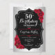 Elegant Silver Black Red Photo 50th Birthday Invitation