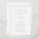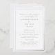Silver Frame Silver Foil Wedding Invitation. Elegant and Simple. White background. Bride parents listed. Contact designer for additional options. 2 venues. Church wedding.