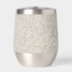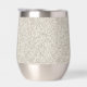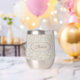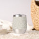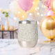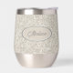 This wine tumbler glass has a pretty silver and grey bronze faux glitter background that especially complements the stainless steel finish. At the centre is your name on an oval with darker matching border. Elegant!