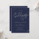 Elegant Silver Calligraphy Navy Wedding Invitation